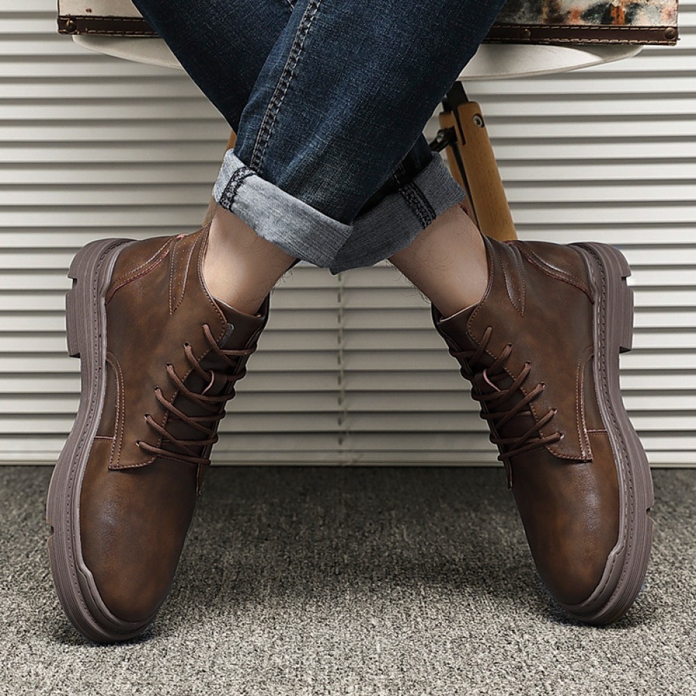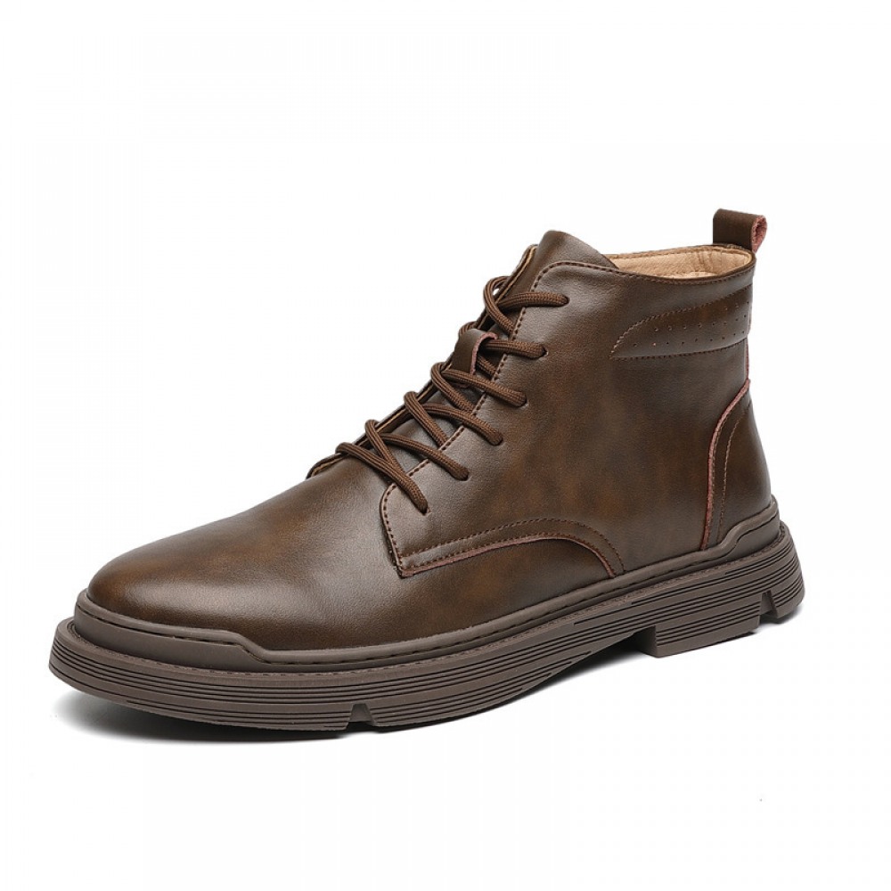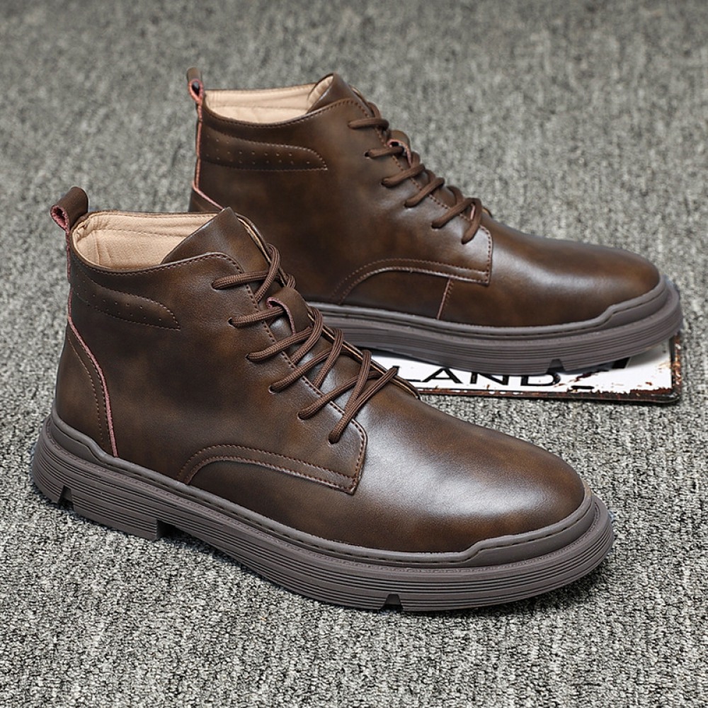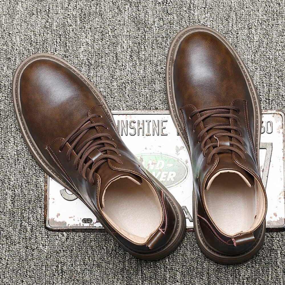 Men's Breathable High-Top Leather Shoes Middle Cut Tooling Short Martin Boots