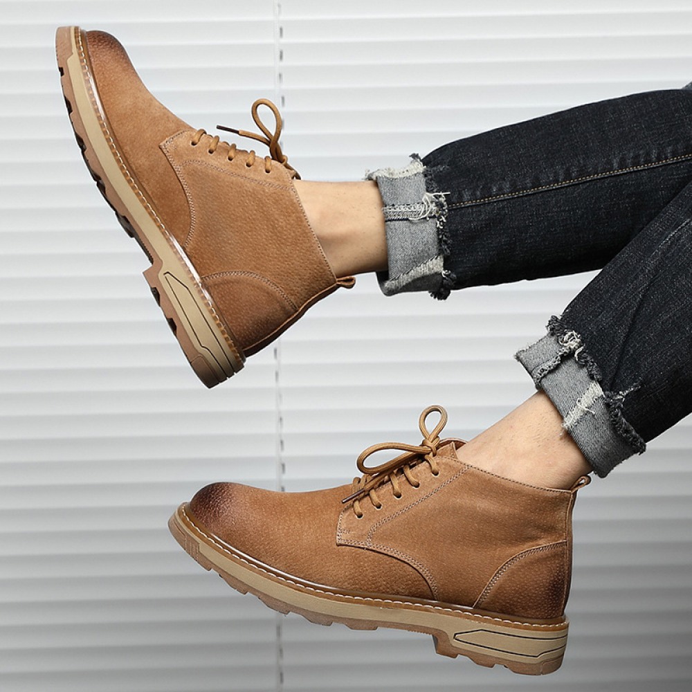 Men's High-Top Trendy Short Boots Tooling Leather Martin Boots